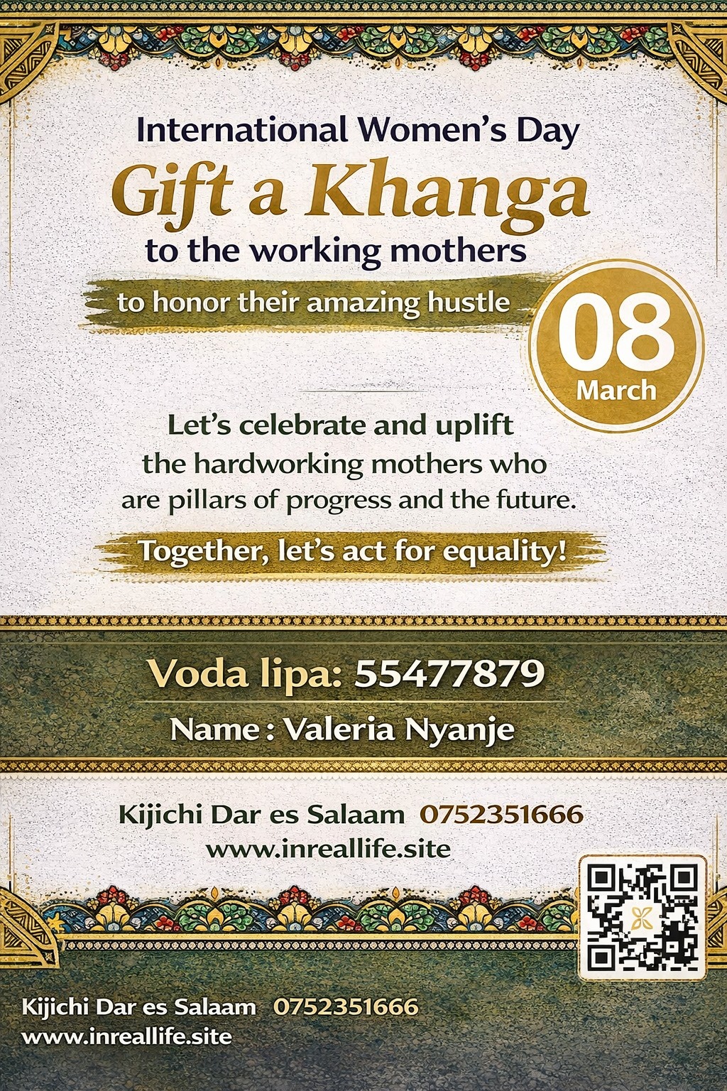 This International Women’s Day, In Real Life invites the community to honor hardworking mothers by contributing towards providing khangas as a gesture of gratitude and encouragement.
